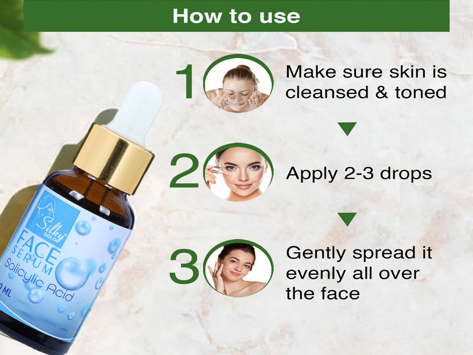 Silky Gold made a magical Face Serum enriched with 2% Salicylic Acid, glycerin and natural